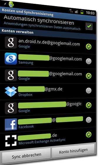 Viele von diesen Diensten sind von Hause aus auf eine permanente Synchronisation im Stundenrhythmus eingestellt, das bedeutet im ungünstigsten Fall bei beispielsweise nur 6 Diensten, dass das Handy alle 10 Minuten in das Internet geht und eine Abfrage mit eventuellen Download startet.