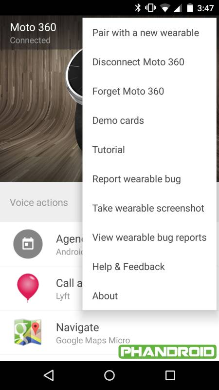 Auffällig sind die hellen Hintergründe des Android Wear Managers, womit das bisherige Schwarz ausgedient hat. Neu hinzugekommen sind neue Elemente im Kontext-Menü, von wo aus man Screenshots der Android Wear Uhr aufnehmen kann, die Uhr trennen, die Verbindung komplett löschen oder Fehlerberichte anschauen kann. Das die neue Version des Android Wear Managers richtig viel Neues hat ist also nicht untertrieben. Jetzt müssen die Updates nur noch verteilt werden.