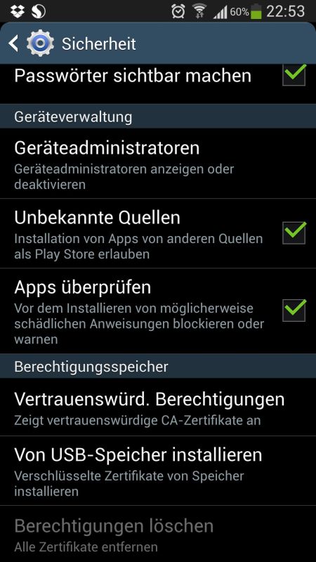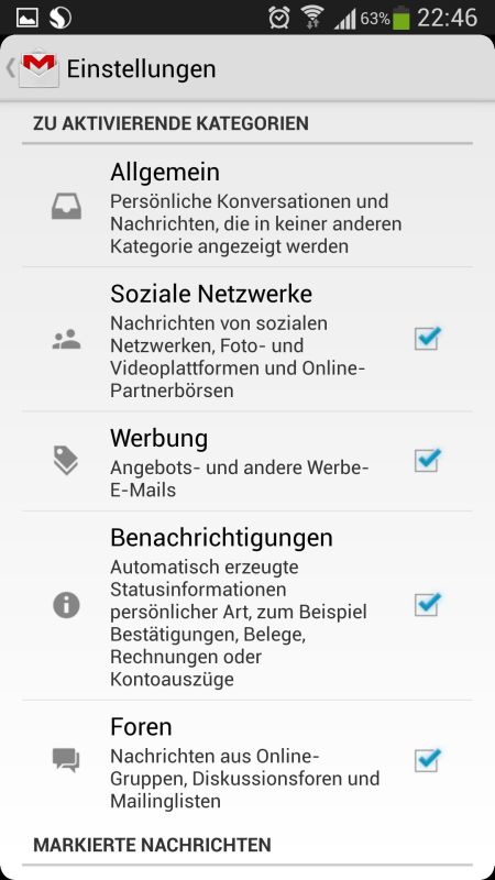 Kleiner Tipp noch, wer auf seinem Androiden die Kategorien nicht angezeigt bekommt: