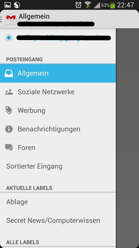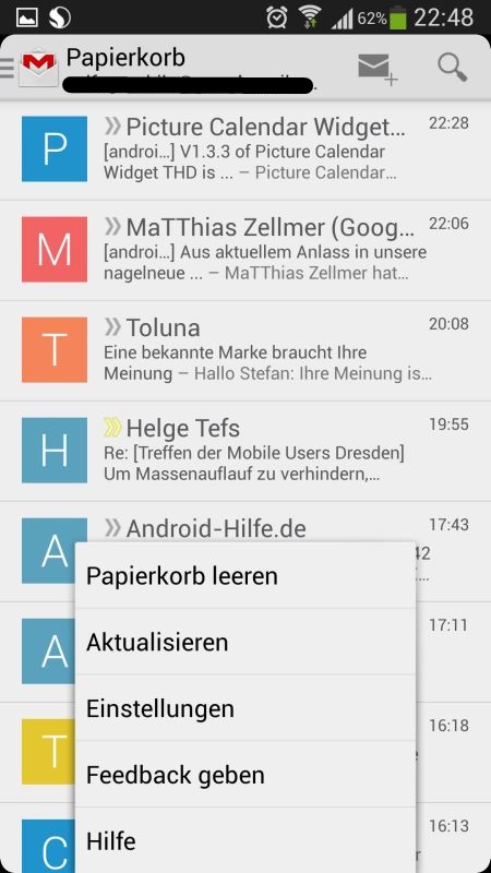 Im Prinzip sind das voreingestellte und änderbare Ordner, wo eingehende Mails automatisch einsortiert werden können. Zu diesen Kategorien gelangt man sehr komfortabel über den neuen Notification Drawer, der in der Hauptübersicht per simpler Wisch-Geste eingeblendet werden kann. Ebenfalls neu: Mit einer Wisch-Geste nach unten kann der Posteingang nun aktualisiert werden. Und was auch eine gefühlte Ewigkeit hat auf sich warten lassen, ist die Funktion zum kompletten leeren des Mülleimers mit nur einem Befehl. Wie die Neuerungen konkret aussehen, könnt ihr den folgenden Screenshots entnehmen.