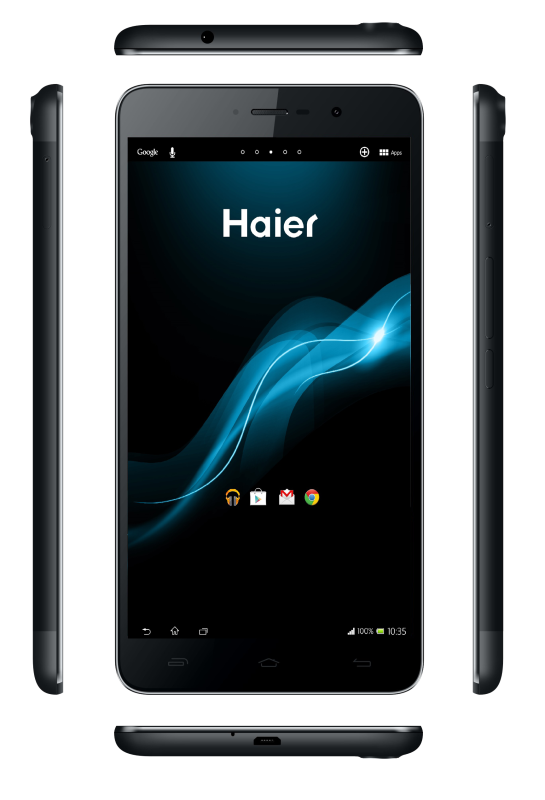 Das dritte Android-Gerät im Bunde ist das Phablet HaierPad H6000, dessen Highlight zweifelsohne das 6″ große FullHD-Display ist. Für 349 Euro gibt es weiterhin einen MT6589T Quadcore mit 1,5 GHz, 16 GB interner Speicher, auf welchem die Aufnahmen der 13 Megapixel Kamera sowie 5 Megapixel auf der Vorderseite Platz finden. 8,2 mm dick ist das Phablet und bringt dabei stattliche 208 Gramm auf die Waage. Für einiges an Ausdauer soll der 3.200 mAh große Akku sorgen. Wie bei chinesischen Smartphones üblich, finden im 3G-fähigen Haierpad H6000 gleich zwei SIM-Karten Platz.