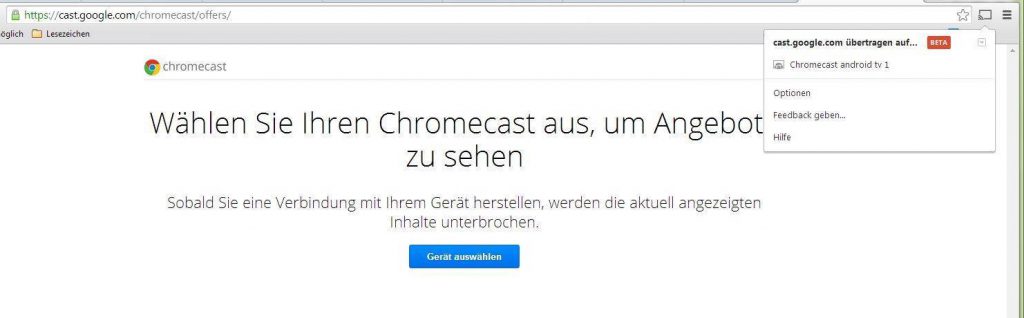 Um den Testzeitraum von den sonst üblichen 30 Tage auf 90 Tage zu erhöhnen, muss man lediglich den Chromecast in seinem WLAN eingebucht haben und die Chromecast-Erweiterung für den Chrome Browser oder Firefox installiert haben. Danach öffnet man die Website von Google zum Einlösen des Angebots, setzt den Haken und klickt auf „Weiter“. Im Nächsten Fenster wählt man seinen HDMI-Stick aus. Ist das erfolgt werden einem die verfügbaren Aktionen angezeigt und mit einem Klick auf „Einlösen“ öffnet sich Google Play Music in einem neuen Tab.