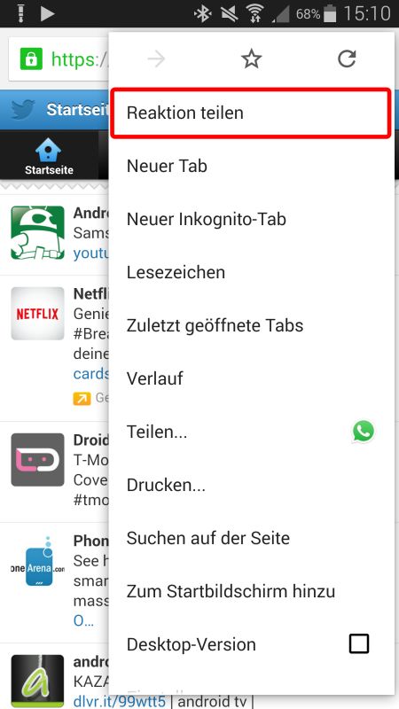 Wer heute das erste Mal den Chrome Browser unter Android geöffnet hat, wird sicherlich schon darüber gestolpert sein: Der Chroem Selfie, bzw. „Reaktion teilen“. Damit kann man ein schnelles Selfie aufnehmen, während man sich eine Website anschaut im Chrome Browser und kann dieses sofort mit anderen Menschen teilen.