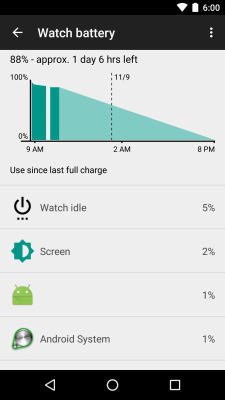 Prominentestes Beispiel für den Wegfall einer Funktion wird der Akku-Graph sein, welcher seit dem letzte größeren Update Ausschluss über den Energieverbrauch der Smartwatch gibt. Zusätzlich gibt der Graph derzeit noch eine Prognose darüber aus, wann die Android Wear Uhr spätestens das nächste Mal an das Ladegerät muss, bevor der Akku restlos alle ist. Ob dieser wieder kommt oder nur an einer anderen Stelle auftaucht ist unklar. Wünschenswert wäre es durchaus.