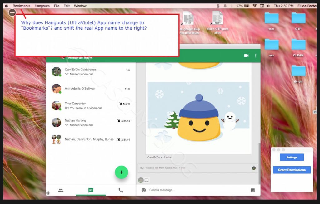Was genau Google alles an Veränderungen an seinem eigenen Messenger vornehmen will ist natürlich noch nicht bekannt, aber wie Google Hangouts für den Desktop aussehen könnte dagegen schon. Zumindest gibt es einen Screenshot aus dem Google Issue Tracker, wo gestern ein mittlerweile wieder gelöschtes Bild die neue Oberfläche zeigte. Angesichts des kleinen Käfers in der linken unteren Ecke des Fensters ist die Oberfläche des neuen Google Hangouts deutlich als interne Version für Testzwecke auszumachen.
