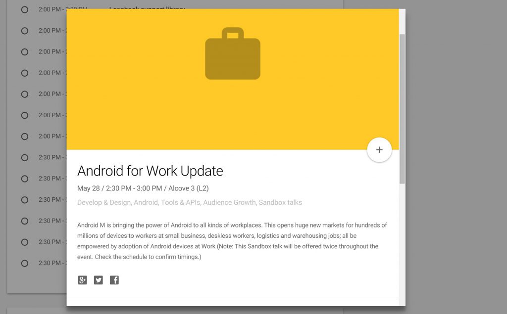 In der Zwischenzeit hat Google die Session wieder gelöscht, da sie entweder nicht angedacht war, ausfallen muss oder weil sie zu früh den Hinweis auf Android M gegeben hat. Es gibt aber zum Glück Screenshots von der Session und deren Beschreibung: