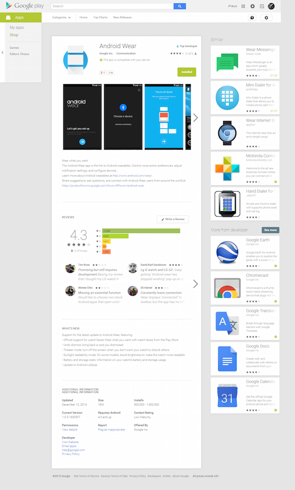 Denn wie nun aufgetauchte Bilder zeigen, plant Google die Browser-Version kräftig aufzuwerten und den verfügbaren Platz auf einem Monitor sinnvoller auszunutzen. Konkrekt geht es um eine Sidebar im Google Play Store, welche ähnlich nach YouTube zur aktuellen App an der rechten Seite weitere Apps des Entwicklers sowie ähnliche Apps anzeigt. Im Prinzip das was man auch von der Suche im mobilen Client des Google Play Store her kennt. Nur das die Ergebnisse in einer Sidebar jederzeit zu sehen sind.