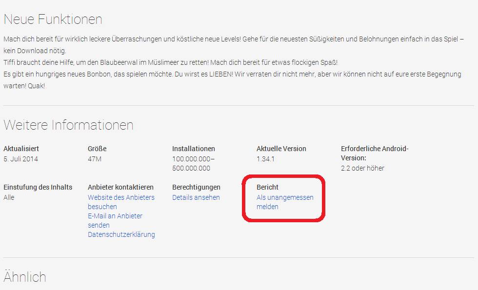 Warum man nach dem Klick auf den Link zum Melden jedoch nicht gleich zu eben dieser Unterseite weitergeleitet wird weiß wohl wirklich nur Google allein.
