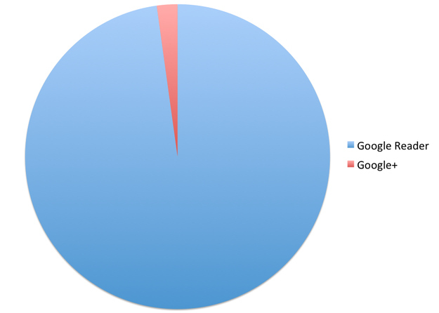 Das ist ein derart falscher Vergleich dass es wehtut. GReader ist ein Tool das nach aussen verlinkt. Google+ ist die Zielseite, die g+-Artikel direkt sind bei Google verlinkt. Da vergleicht man nicht mal Äpfel mit Birnen, das ist Schrott.
