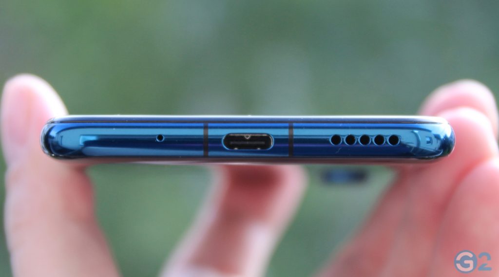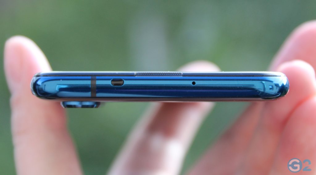 Auf der linken Seite befindet sich der SIM-Tray für zwei Nano-SIM-Karten. Eine Erweiterung für eine microSD-Karte ist nicht vorgesehen. Unten gibt es einen USB-Type-C-Port, rechts eine Lautsprecher-Öffnung und links ein Mikrofon. Spätestens bei der Sicht der Oberseite wird klar, das die Vermutung des Adapters ein Fehlen einer 3,5 Millimeter Kopfhörerbuchse sich bestätigt. Dafür bietet das Honor 20 Pro aber noch einen IR-Blaster der zur Fernsteuerung von HiFi-Geräten oder dem TV genutzt werden kann.