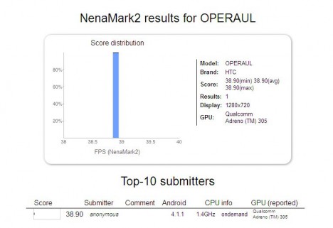 Das HTC One X Plus kündigte sich damals auch zuerst über ein Benchmark-Ergebnis an, das Operhaul macht da keine Ausnahme. Viel gibt der Benchmark zwar auch dieses Mal nicht Preis, denn lediglich die Displayauflösung, die verwendete Androidversion und die vorhandene GPU sind dem Ergebnis zu entnehmen. So wird im Operhaul ein Display mit 1.280 x 720 Pixel zum Einsatz kommen, welches die volle Pracht von Android 4.1.1 nebst Sense zur Geltung bringen wird. Als GPU kommt eine Adreno 305 zum Einsatz und hier lässt sich ein Rückschluss auf den verbauten Prozessor machen. Der einzige derzeitige Chipsatz bei Qualcomm mit einer Adreno 305 ist der Snapdragon S4 Plus, ein bis zu 1,7 GHz schneller Dualcore mit Krait-Kernen. Ergo wird im HTC Operhaul die ARM-Cortex-A15-Generation Einzug halten, die bereits im Snapdragon S4 Pro ihre Leistung deutlich unter Beweis gestellt hat.