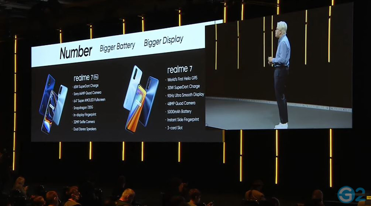 Hier stellte Giang Cao, Digital Manager für Europa mit Sitz in Düsseldorf die C-Serie für Einsteiger-Modelle, die Narzo-Serie welche die Flaggschiff-Serie für Indien deklariert. Hierzulande markiert die X-Serie das Premium-Segment. Und last but not least die Nummern-Serie, wie das von uns getestete Realme 6 Pro. Hier hat uns auch Cao nun die Nachfolge-Modelle mit dem Realme 7 und Realme 7 Pro vorgestellt. Mittelklasse typisch ein 6,4 Zoll großes AMOLED-Display mit Punch-Hole-Frontkamera, ein Snapdragon 720G (Pro), Quad-Kamera, Stereo-Lautsprecher und einem 5.000 mAh starken Akku, der sich mit einem 65-Watt-Netzteil aufladen lässt. Beide Geräte erscheinen noch in diesem Jahr, zuerst in Indien.
