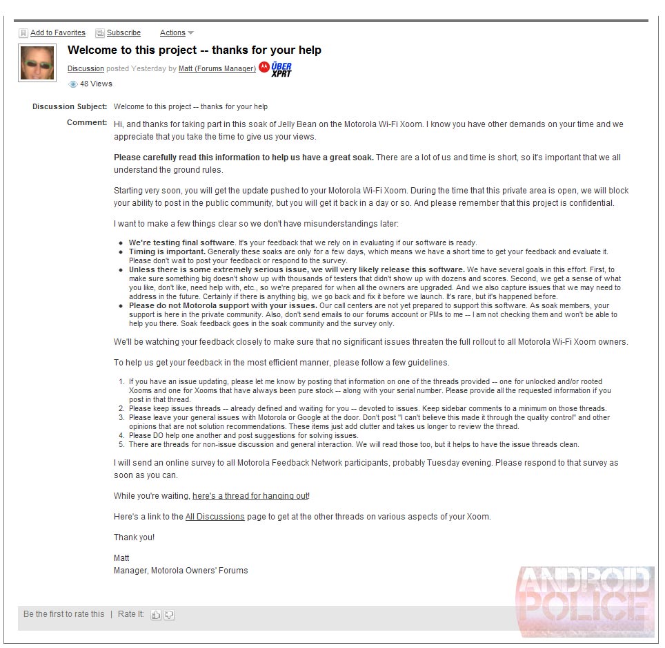Immerhin können für das Beta-Programm registrierte Käufer der US-Version des Xoom WiFi in den Genuss von Jelly Bean kommen, auch wenn es sich noch um die Testphase handelt. Wer als Glücklicher die Test-ROM bereits erhalten hat, soll dem Konzern etwaige Bugs und andere Seltsamheiten melden, damit diese bis zum finalen Rollout an alle Xoom-WiFi-Besitzer behoben werden können. Spätestens wenn die ROM ihren Weg in die Weiten des Internets gefunden hat, werden früher oder später alle Xoom-Besitzer eine Jelly Bean Custom ROM finden können. Denn die Modder-Szene ist bei solchen Dingen immer Recht schnell, was vielen von uns Zugute kommt.