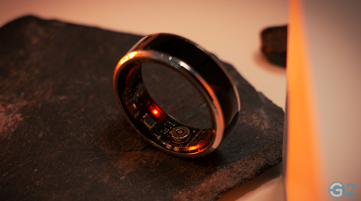 Wer sich den Ring innen etwas genauer anschaut, erkennt auch eine Reihe an Sensoren und LEDs. Neben einem GR5513B-Prozessor, verbaut der Hersteller einen Photoplethysmographie-Chip (PPG), eine rote, als auch zwei grüne LEDs, Bluetooth 5.3 und einen 6-Achsen-Beschleunigungssensor. Zur Vervollständigung: Die getrackten Daten werden auf dem Ring, sofern ausreichen Strom, für sieben Tage gespeichert, bevor sie mit dem Smartphone und der CyFit-App synchronisiert werden müssen.