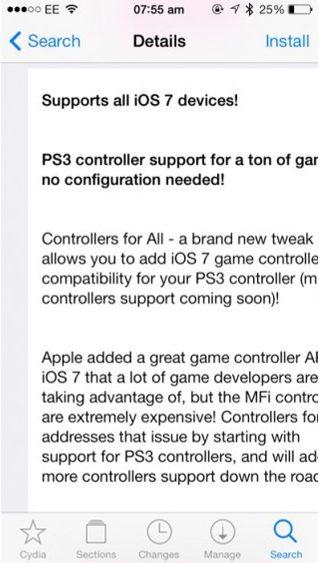 4 Zoll Retina Display hin oder her – das Zocken von iOS Games macht doch mit Hilfe eines Controllers wesentlich mehr Spaß. Und wer hat nicht schon darüber nachgedacht seinen eh vorhandenen PS3 Dualshock 3 Controller mit seinem iPhone oder iPad zu pairen. Genau das ist für alle die, die ihr iDevice mit einem Jailbreak versehen haben möglich. Im Cydia Store gibt es ab sofort den Cydia Tweak „Controllers for All“ für knapp 2 US Dollar.