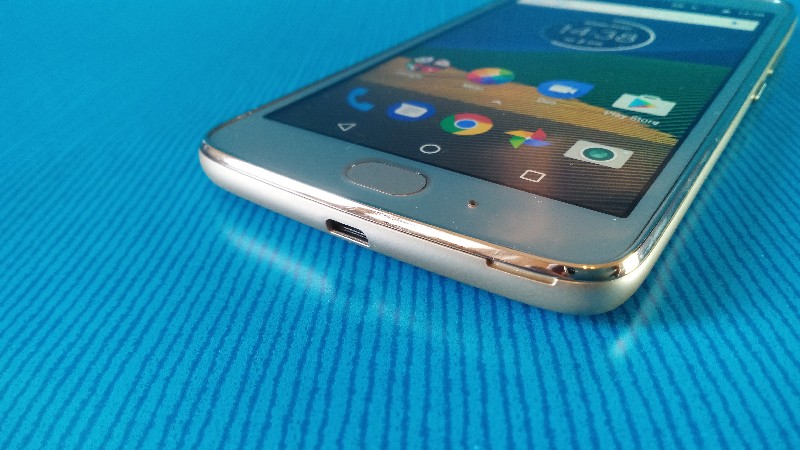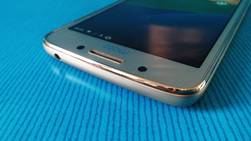 Die neue G-Reihe nimmt die Designsprache der Moto Z Geräte auf, was vollkommen legitim ist. Optisch macht das Moto G5 richtig was her. Die bereits erwähnte qualitativ hochwertige Verarbeitung tut ihr übriges dazu. Das Gerät liegt gut in der Hand und trotz abnehmbarer Rückseite, welche aus Kunststoff und Aluminium besteht, knarzt da gar nichts. Auf der rechten Seite finden wir sowohl die Laut- Leisewippe als auch den Power Button. Auf der Unterseite ist lediglich der micro-USB-Anschluss. Der 3,5 mm Klinkenanschluss befindet sich oben. Linker Hand ist nichts außer dem Kunststoffteil der Rückseitigen Abdeckung. Auf der Rückseite, welche ein Inlay aus Aluminium besitzt, ist das auffälligste Merkmal die 13 Megapixelkamera mit einem einfachen LED-Blitz, welche in einer runden Einfassung sitzt. Auch dieses Designmerkmal erinnert am die Moto Z Geräte. Die Kamera wird komplett von der Abdeckung eingefasst, was gut ist, da die Linse so nicht so leicht verkratzen kann. Auch liegt das Moto G5 stabiler auf einer gerade Fläche.