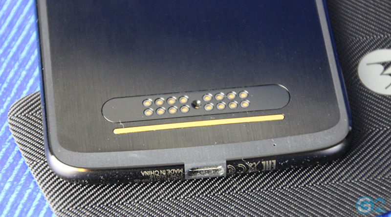 Eine 3,5 Millimeter Klinkenbuchse für den Kopfhörer sucht der Z2-Kunde vergebens. Bei einem ohnehin schon schlanken Akku mit einer Kapazität von 2.730 mAh, blieb dafür kein Platz. Motorola legt dem Moto Z2 Force einen entsprechenden Adapter über den an der Unterseite befindlichen USB-Type-C-Anschluss bei.