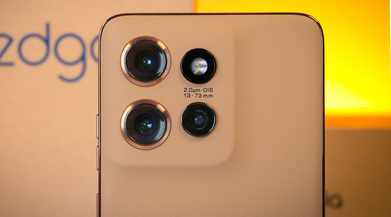 Motorola verbaut auf der Rückseite ein homogen aufgesetztes viereckiges Kamera-Array, welches durch das LED-Blitzlicht auch eine symmetrische Anordnung genießt. Haptisch schon einmal gelungen. Verbaut ist eine 50-MP-Hauptkamera auf Basis eines 1/1.55 Zoll großem Sony Lytia 700 Image-Sensor. Er ist optisch stabilisiert (OIS) und die Optik bietet eine Offenblende von f/1.8 bei einer äquivalenten Brennweite von 23 Millimeter. Natürlich macht Ihr in der Standardeinstellung  autofokussierte Pixel-Binning-Aufnahmen von 12,5 Megapixel. Unkomprimierte RAW-Aufnahmen sind aber auch möglich. Es gibt eine „natürliche“ Bild-Präferenz und eine „optimierte“, welche ein wenig dynamischer vorgeht aber bei all unseren Testaufnahmen nicht verwendet wurde.