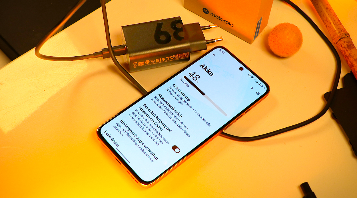 Ebenfalls positiv zu bewerten ist der Aspekt, dass das Edge 50 Neo mit 68 Watt TurboPower aufgeladen werden kann. Natürlich legt der Hersteller ein solches Netzteil nicht mit in den Lieferumfang. Kabelloses Laden geht aber auch – dann aber mit 15 Watt Leistung.