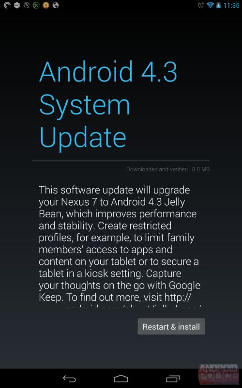 Zwar hatte Google vor wenigen Wochen ein kleines Update verteilt, welches jedoch beim Großteil seine Wirkung verfehlte. Mit dem neuerlichen gut 8 MB großen Update scheint Google vermutlich erneut die Probleme anzugehen, denn Android bleibt bei Version 4.3 Jelly Bean, die Buildnummer hingegen steigt auf JSS15R. Ein Changelog ist Google übrigens wie eigentlich fast immer schuldig geblieben. Konnte man schon beim letzten Update sehen, wo selbst auf exzessiver Nachfrage keinerlei Ton zu den Änderungen zu hören war.