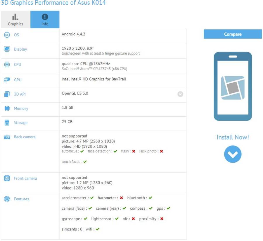 Entdeckt wurde das Modell wie so oft in der Datenbank eines Benchmarks, was in diesem Fall GfxBench gewesen ist. Dort ist ein Android-Tablet namens K014 von ASUS aufgetaucht, welches aufgrund der technischen Daten und der Größe des Displays als MeMO Pad 8.9 vorgestellt werden dürfte. Während die zur Computex 2014 vorgestellten Modelle MeMO Pad 7 und 8 was den Speicher betrifft wirklich in der Einsteiger-Klasse vorzufinden sind, ist das MeMO Pad 8.9 mit 2 GB RAM und 32 GB internem Speicher auf einem etwas anderen Level. Auch die Auflösung ist mit 1.920 x 1.200 Pixel besser auf dem Papier.