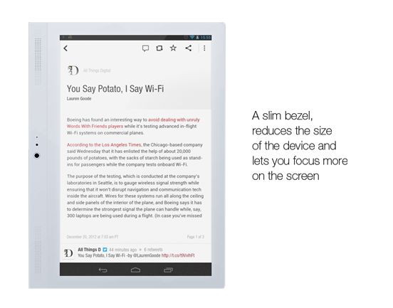 Das alles ist nichts Besonderes aber Notion Ink wäre nicht Notion Ink, wenn das Adam II nicht doch etwas Besonderes hätte, dieses gewisse Etwas. Beim ersten Adam war es die Benutzer-Oberfläche mit ihren 3 nebeneinander angeordneten Fenstern und darauf zugeschnittenen Apps. Das Adam II hat an der Seite allerdings ein zweites kleineres Display. Auf diesem werden Benachrichtigungen und andere Kontext-basierte Informationen angezeigt, fast so wie bei einem Buchrücken.