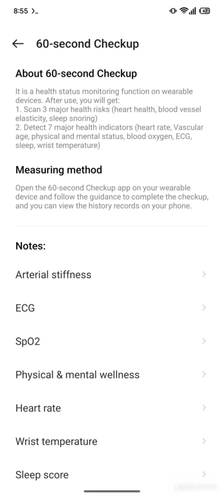 Eine weitere spannende Funktion ist der sogenannte „60-second Checkup“, mit dem innerhalb von einer Minute eine umfassende Analyse der aktuellen Gesundheitsdaten durchgeführt werden kann. Hierbei werden alle verbauten Sensoren genutzt, um eine detaillierte Übersicht über die wichtigsten Vitalwerte zu erstellen. Diese Funktion richtet sich besonders an Nutzer, die regelmäßig ihren Gesundheitszustand überwachen möchten.