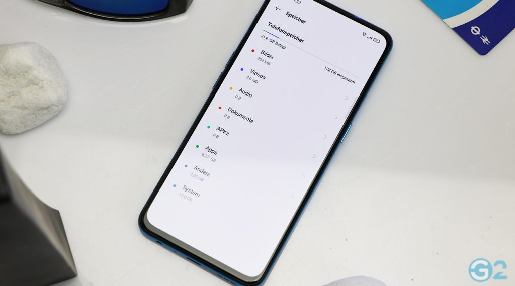 Speichertechnisch ist das Oppo X3 Lite mit 8 GB LPDDR4x RAM und 128 GB an UFS-2.1-Nand-Speicher ausgestattet. Eine Erweiterung via microSD-Karte gibt es leider nicht. Warum ist indes unklar, da das „Original“ Reno 5 diesen bietet. Platz wäre also da. Ab Werk sind in etwa von den 128 GB noch 110 GB verfügbar.