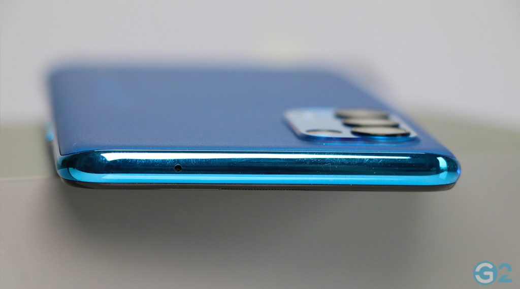 Haptisch gesehen ist das Oppo Find X3 Lite ein echter Gewinn. Das erste Mal das Smartphone in der Hand haltend, fallen gleich zwei Merkmale auf: das flache Gehäuse von 7,9 Millimeter (159,1 x 73,4 mm) bei 172 Gramm und die in unserem Fall in Astral Blue tolle und leicht angeraute Rückseite. Weitere Farben sind Starry Black und Galactic Silver. Man mag das Device gar nicht mehr aus der Hand geben, weil es sich mit seinem Besitzer nahezu verschmilzt und eine Einheit bietet. Laut Oppo ist die Polymer-Rückseite auch ölabweisend.