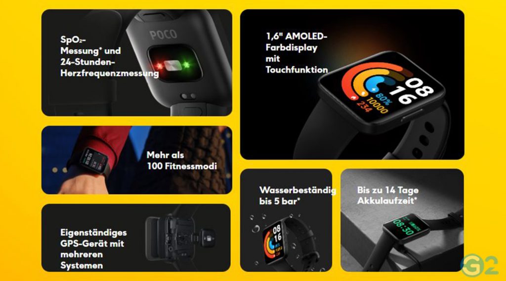 Nicht nur das Poco F4 GT als erstes Gaming-Smartphone der Xiaomi-Tochter ist ein umgelabeltes Redmi K50 in der Gaming-Edition, sondern auch bei der ersten smartene Uhr – der Poco Watch – hat man sich bei der Redmi Watch 2 Series bedient. Teilweise wurden so gar die identischen Marketingaufnahmen verwendet, was ein wenig amüsant ist, da bei jedem Gespräch darauf hingewiwsaen wird, das Poco eine eigenständiges Unternehmen sei. Würde auch durchaus einen Sinn ergeben, wenn das jeweilige Redmi-Modell hierzulande nicht verkauft wird. Und obwohl ihr die Redmi Watch Lite 2 bei Amazon für knapp 60 Euro bekommt, scheint es sich technisch doch um das Basismodell zu handeln, welches hierzulande nicht erhältlich ist.