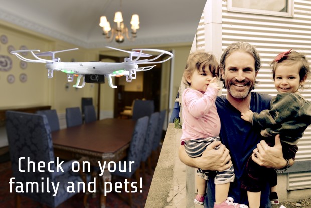 Die Macher haben die Drohne in erster Linie als steuerbare Überwachungskamera geplant, mit deren Hilfe man seine Wohnung oder sein Haus im Urlaub aus überwachen kann. Mehr als ein Android Smartphone oder iPhone braucht es nicht, um die Rook Drone steuern zu können. Über die App lässt sich auch das gestreamte Bild der Drohne sehen um zu schauen was der Hund macht, ob die Kinder auch ja keine wilde Hausparty feiern oder ob man vergessen hat, den Ofen auszuschalten.