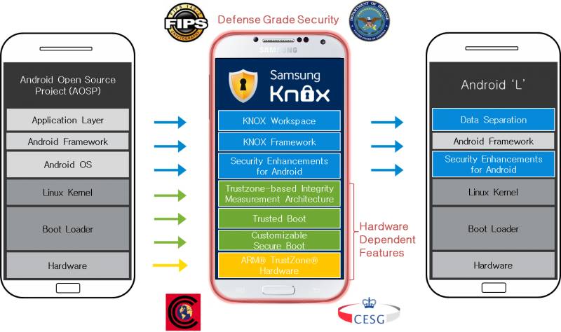 Ganz konkret übernimmt Google für Android for Work lediglich die Nicht-Hardware-bezogenen Funktionen, wozu Erweiterungen der Sicherheit zählen, Enterprise-APIs und die Datentresor-Technologie von Samsung KNOX. Hardware-gestützte Funktionen wie TrustZone (verschlüsselter Speicherbereich im ARM-Prozessor für kryptografische Schlüssel) werden nicht übernommen und stehen lediglich Käufern der Galaxy-Geräte sozusagen als Zusatz zur Verfügung. Aber das ist noch nicht alles. Die folgenden Bestandteile von Samsung KNOX werden ebenfalls kein Bestandteil von Android for Work sein.
