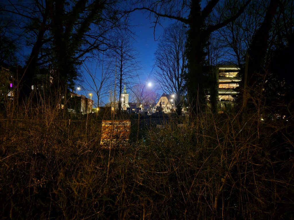 Das S24 erkennt automatisch Aufnahmen bei schlechter Belichtung und schaltet den entsprechenden Modus ein, welcher aber auch manuell ausgewählt werden kann. Nachtaufnahmen gehören beim kompakten Samsung-Flaggschiff nicht zur Paradedisziplin, sind aber im Grunde okay. Große Belichtungszeiten und damit eine deutliche Lichtintensivität auf den Fotos sind nicht zu erwarten. Ein wenig Erleuchtung erwartet das S24 schon, wenn Nachtfotos gelingen sollen.