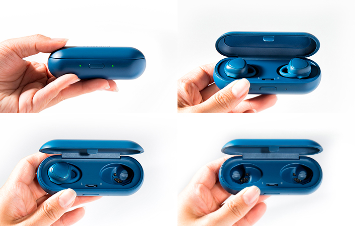 Die Kopfhörer sind mit einen 47 mAh starken Akku ausgestattet und können mehrfach über die mit gelieferte Aufbewahrungsbox (315 mAh) aufgeladen werden.
