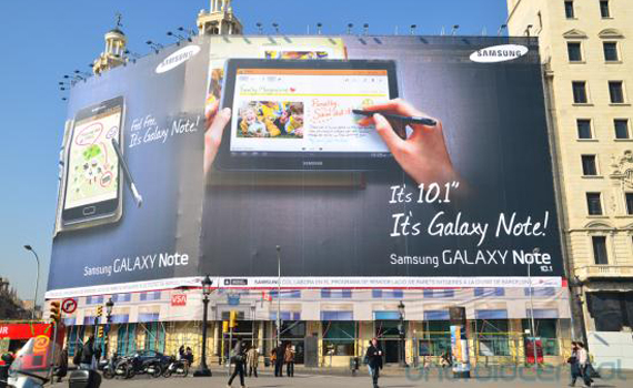 Zuerst waren es nur Gerüchte um das Galaxy Note 10.1 die aufgrund eines eventuellen Schreibfehlers in einem Leitfaden für den Developer Day auf der MWC 2012 im Netzt gefunden wurden (wir berichteten->). Doch nun verhärten sich die Gerüchte aufgrund hinter den Kulissen heimlich abfotografierten Werbeplakaten und ein wenig offensichtlicheren XXL Plakaten an den Häuserwänden Barcelona´s.