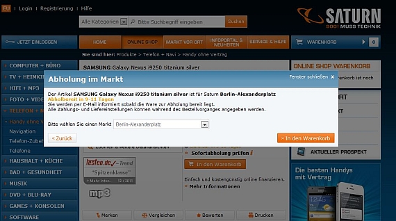 Saturn verkauft das Galaxy Nexus nun auch für 529,-€