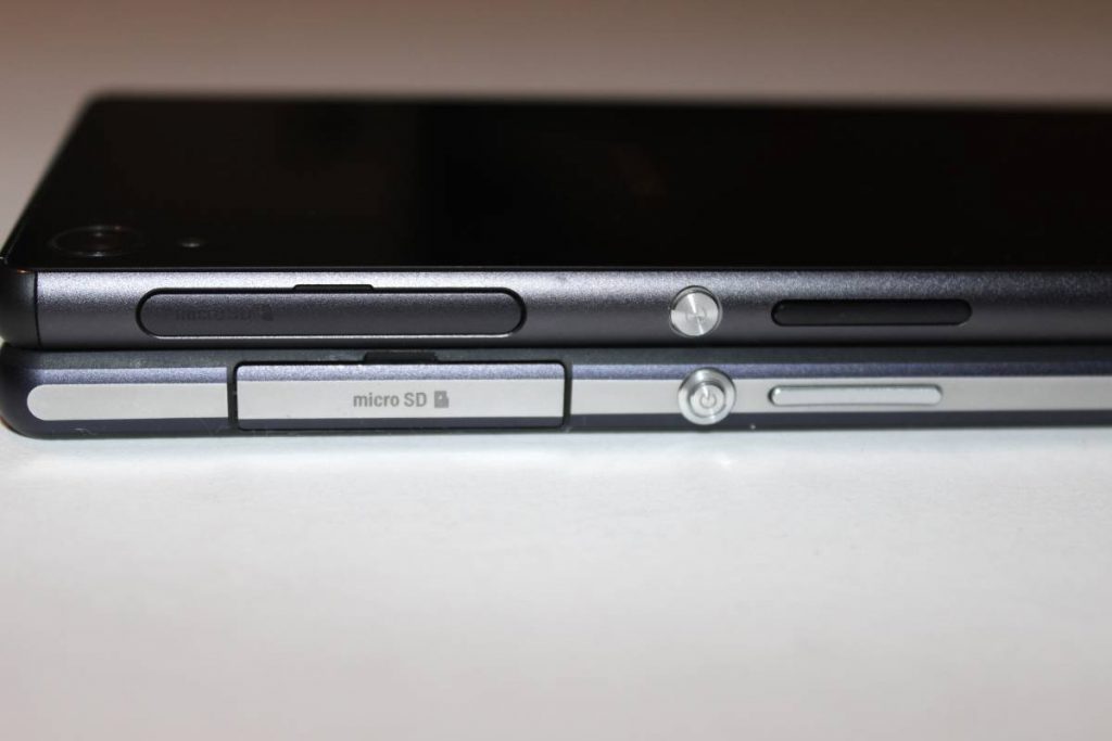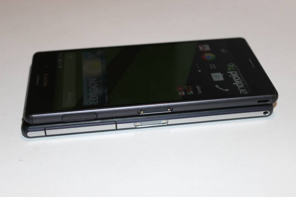 Wie man anhand der Tabelle schon sieht, hat sich technisch wirklich kaum etwas getan zwischen dem Sony Xperia Z2 und dem Sony Xperia Z3, sieht man mal von den handlicheren Ausmaßen des neueren Modells ab. Selbst das Design hat sich überwiegend gehalten, aber bei den Details hat Sony dennoch einen Schritt nach vorne gemacht. Waren die Seiten des jeweiligen Sony-Flaggschiffs bis einschließlich dem Sony Xperia Z2 noch abgeschliffen, so ist der Rahmen des Sony Xperia Z3 durchgängig mattiert und nicht abgeschliffen. Das wird vor allem bei dem Blick beider Geräte übereinander sehr deutlich.
