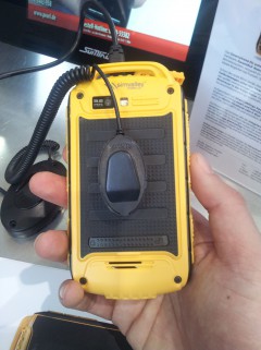 Auffallend am SPT-800 ist als erstes die Gehäusefarbe. Diese kommt nicht im Standard schwarz daher sondern in Quietscheentchen gelb. Einen Vorteil hat diese Farbe ja: Sie ist auffallend, nicht so ganz verkehrt für den Bau. Wie auch beim Caterpillar CAT B10 ist das Gehäuse verstärkt und mit einer gummierten Oberfläche versehen. Überhaupt teilen sich die beiden Geräte recht viele Eigenschaften: Beide sind sehr robust gebaut, beide haben Gummiverschlüsse für die verbauten Anschlüsse (MicroUSB, 3,5 Klinkenstecker für Headsets). Nur die IP67-Zertifizierung weist das Cat B10 auf, das SPT-800 hat keinerlei Zertifizierung und sollte demnach nicht gerade so rau angefasst werden wie das Cat B10. Dennoch verspricht Pearl ein sehr widerstandsfähiges Gehäuse.