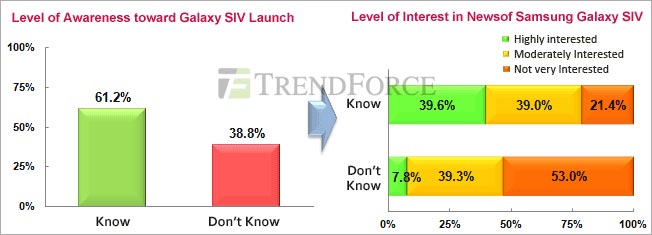 Die Gründe für einen Wechsel vom iPhone zu Samsungs kommenden Flaggschiff für dieses Jahr sind zwar vielfältig aber ein Merkmal stach dann doch heraus. So gaben die meisten an, dass das 5″ Super AMOLED Display mit FullHD-Auflösung sehr reizbar sei für einen möglichen Wechsel. Aber auch der verbaute Prozessor und die qualitativ hochwertige Kamera könnten zu einem Wechsel bewegen, so die Ergebnisse der Befragung. Allerdings bedeutet das nicht, dass die befragten Personen auch tatsächlich zum Galaxy S4 greifen werden, sobald dieses verfügbar ist. Schließlich ging es bei der Umfrage darum, wer welches Smartphone aktuell besitzt und zu welchem Smartphone möglicherweise wechseln würde.