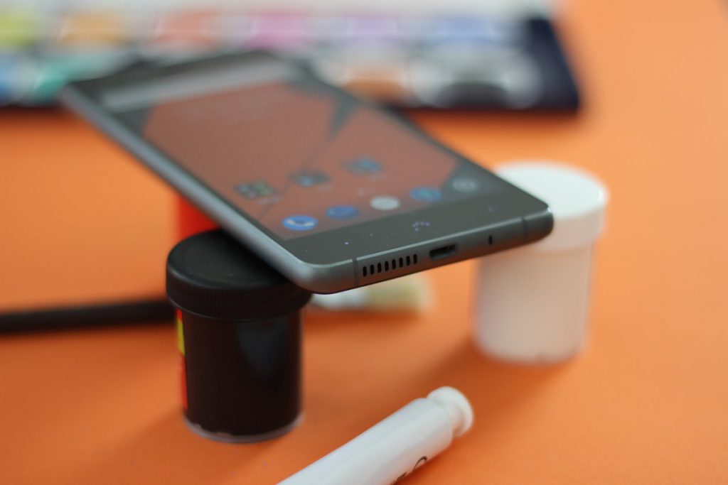 Denn auf der Unterseite des Rahmens sind keine Stereo-Lautsprecher angedeutet wie bei so manch anderen Geräten. Links neben der MicroUSB-Buchse befindet sich der durchaus kräftige Mono-Lautsprecher, während rechts daneben eines der beiden Mikrofone verbaut ist. Kopfhörer – die nicht zum Lieferumfang gehören – finden auf der Stirnseite des BQ Aquaris X5 wortwörtlich Anschluss.