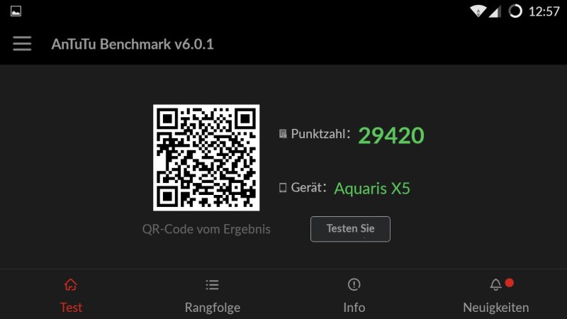 Für eine ordentliche Leistung im Alltag sorgt ein Snapdragon 412 Quad-Core-Prozessor von Qualcomm, dessen vier Cortex A53 Kerne jeweils mit bis zu 1,4 GHz zu Werke gehen. Allein davon sind heutzutage keine Bestmarken mehr zu erwarten, aber mehr braucht es eigentlich auch nicht. Mit 29.420 Punkten im AnTuTu Benchmark ist das BQ Aquaris X5 dennoch ganz ordentlich bei der Sache.