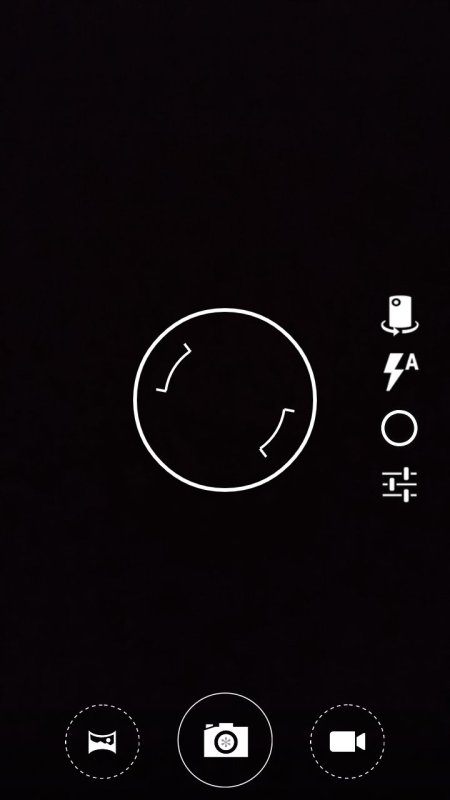 Für die Kamera-App zeichnet sich natürlich Cyanogen Inc. verantwortlich welche sich optisch sehr einfach hält. Neben einem Auslöser für Fotos, für Videos und dem Schnellzugriff für Panorama-Fotos findet man am rechten Rand noch vier kleine Icons. Per Wischgeste von oben nach unten und umgekehrt wechselt man durch die verschiedenen Aufnahme-Modi.