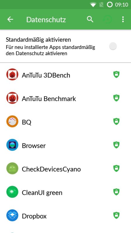 Denn der Privacy Guard dient dazu, neugierige Apps in ihrer Datensammelwut einzuschränken, ohne dabei die Funktionalität der Apps selbst zu beeinträchtigen. Sozusagen der Mittelweg zwischen Nutzen einer App und dem Datenschutz. Ein grünes Symbol zeigt dabei an, dass der Privacy Guard für diese App nicht aktiv ist, während ein schwarzes Icon mit geschlossenem Schloss die Übertragung verhindert.