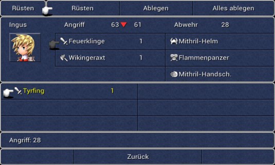 Wie es sich für ein RPG gehört, kommt ein Klassensystem mit unterschiedlichen Fähigkeiten und Eigenschaftsboni zum Einsatz. Final-Fantasy-typisch werden die Klassen Berufe genannt, von denen pro Charakter 23 verschiedene Berufe zur Auswahl stehen, wobei diese nach und nach erst freigeschaltet werden müssen. Neben klassischen Berufen wie Dieb, Krieger, Ritter oder Weißmagier gibt es auch etwas exotischere wie Wikinger, Geomant oder Dunkelritter. Den Beruf könnt ihr jederzeit wechseln wie es euch beliebt, lediglich ein wenig Eingewöhnungszeit braucht jeder Charakter nach dem Jobwechsel, um seine normale Stärke basierend auf dem jeweiligen Beruf wieder zu erlangen. Übrigens hat jeder Beruf sein individuelles Joblevel, welches neben dem normalen Erfahrungslevel trainiert werden kann. Je höher der Berufslevel ist, umso stärker wird der verursachte Schaden durch Berufsspezifische Waffen und Zaubersprüche. Aber auch andere Statuswerte wie Verteidigung oder Intelligenz (verfügbare Magiepunkte) werden dadurch positiv beeinflusst.