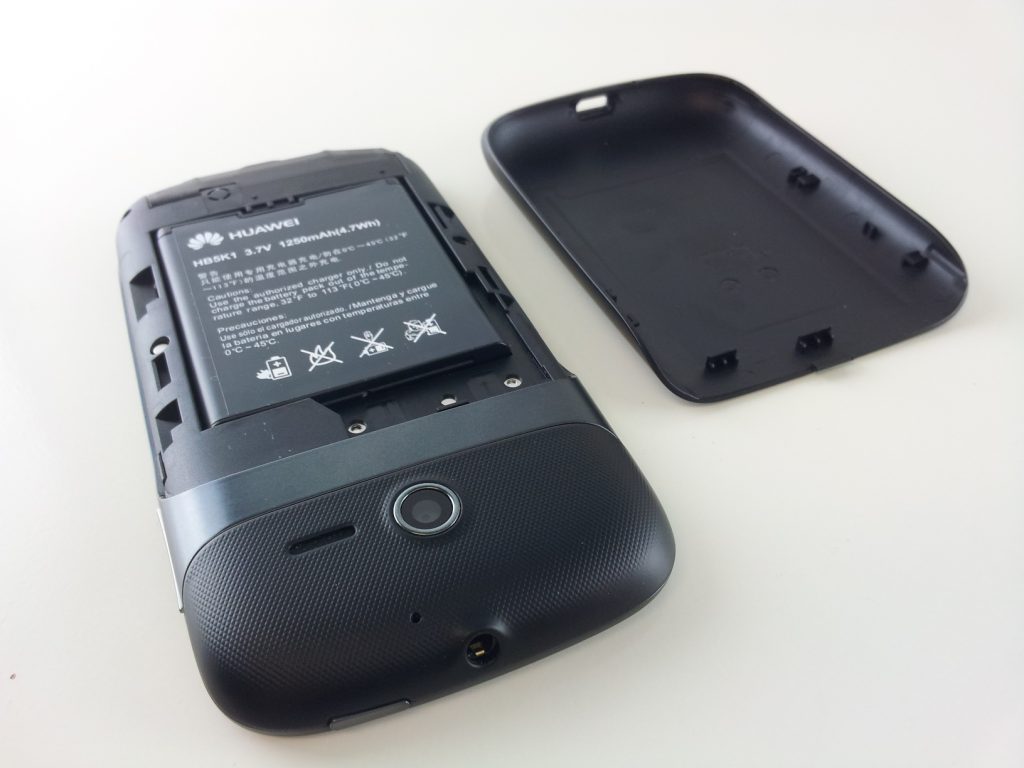 Die Rückseite hingegen lässt keine Vergleiche mit anderen vergleichbaren Smartphones zu. Es ist auch zu spüren, dass man bei der Verarbeitung gespart hat. Zwar ist das Gerät angenehm leicht mit knapp 140 Gramm, jedoch wirkt die leicht genoppte Rückseite doch etwas, wirklich nur etwas, „billig“ auf mich, was vielleicht aber auch daran liegt, dass mir Kunststoff nicht allzu sehr zusagt.
