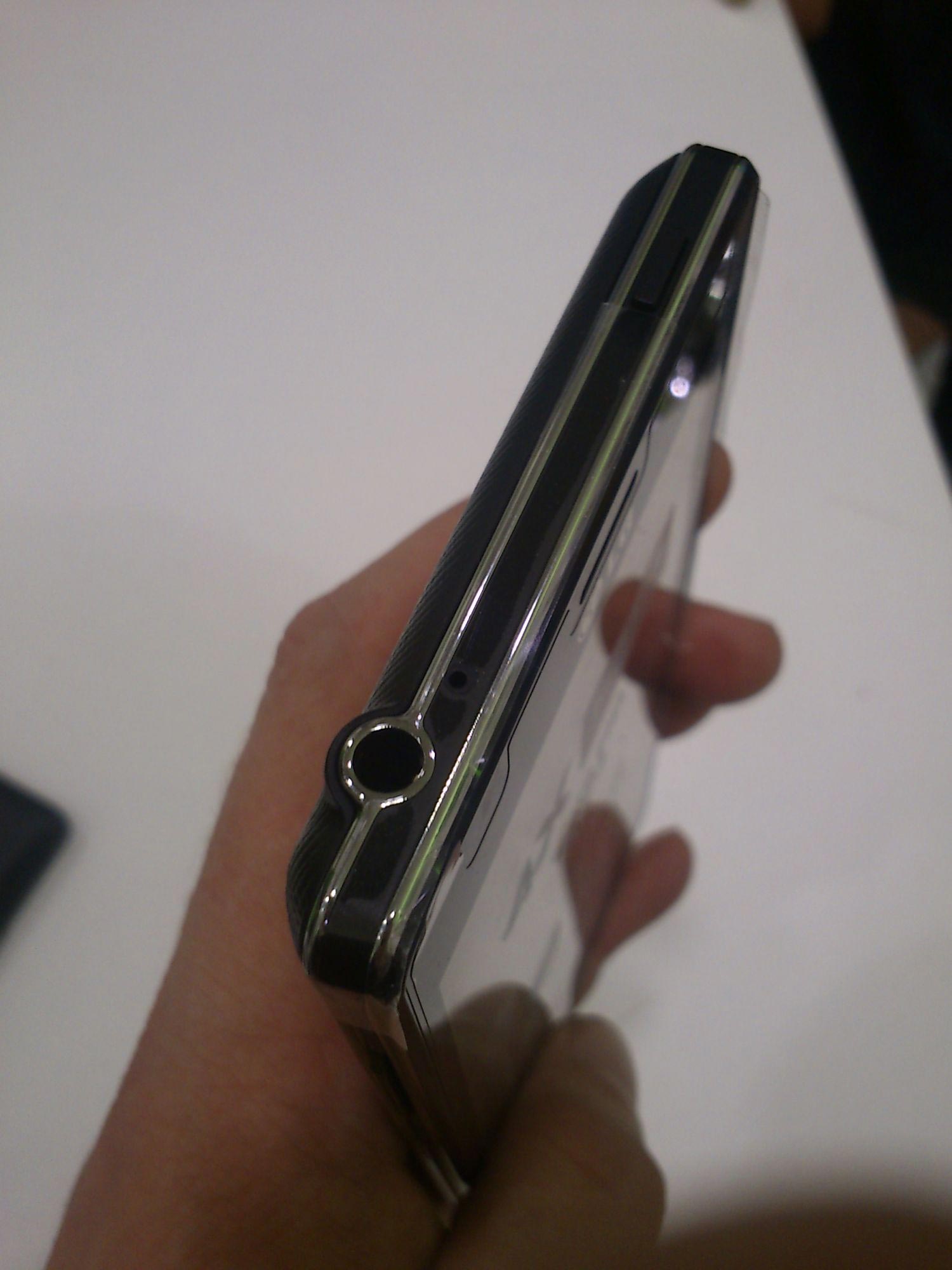 Die Front wird von einer Glasscheibe dominiert, welche nahezu nahtlos in den Gehäuserand überzugehen scheint. Wenn das Display eingeschaltet ist, merkt man die Ausmaße erst recht, dass das Smartphone nur aus Display zu bestehen scheint. Aber spätestens beim Einschalten merkt man: Das hat ja kapazitive Tasten! Diese reagieren leider nicht so zackig wie beim Galaxy S2 und dessen Nachfolger von Samsung gewohnt, was wirklich ernüchternd ist. Obwohl der Tegra3 eigentlich für ausreichend Power sorgen sollte, braucht das Optimus 4X HD mitunter etwas Bedenkzeit beim Drücken der kapazitiven Tasten. Die Gehäuseseiten hat LG mit Chrom-inspirierten Kunststoffleisten versehen, die das Gerät aufwerten.