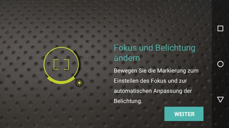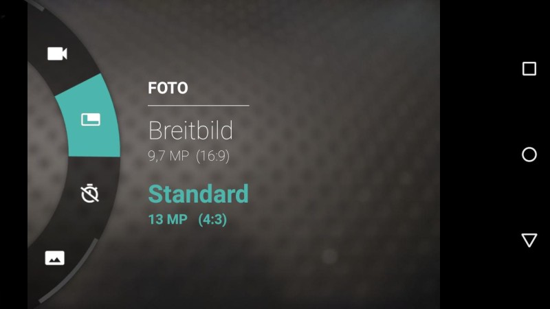 Die Kamera-App selbst hat Motorola wieder sehr minimal gehalten: Es gibt keine überflüssigen Bedienelemente, die vom eigentlichen Fotografieren ablenken könnten. Einzig die Auslöser für Fotos und Videos sind zu sehen, da die restlichen Elemente sowie Optionen per Wischgeste aufgerufen werden. Zur Galerie der letzten Aufnahmen gelangt man beispielsweise per Wischgeste vom rechten Rand nach links, während die Wischgeste in der anderen Richtung den Ring mit den Einstellungen für die Kamera aufruft.