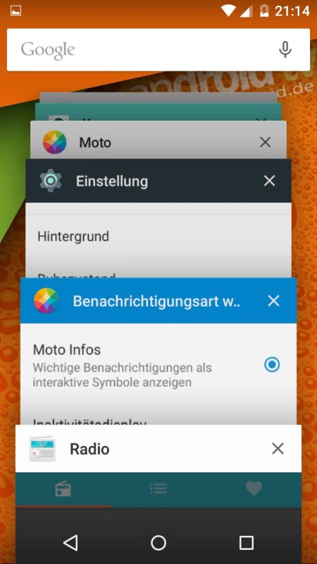 Von daher halten sich die vorinstallierten Apps stark in Grenzen. Natürlich ist die bekannte Bandbreite an Google-Apps vorhanden, was neben Gmail und dem bereits erwähnte Google Play Music auch den Google Chrome Browser umfasst, den Google Kalender, Google Maps und weitere Apps aus dem Repertoire von Google. Von Motorola selbst sind mit der Moto-App – ehemals Moto Assist – der Kamera, der Galerie mit umfangreicher Unterstützung von Multimedia-Codecs, Moto Migrate zum Migrieren der persönlichen Daten von einem älteren Smartphone, dem SMS-Client und einem FM Radio.