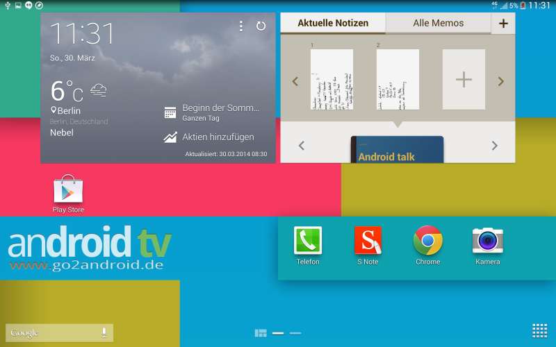 Die Helligkeit ist recht gut, vor allem die Automatik reagiert recht flott und ist angenehm hell eingestellt. Trotzdem teil auch das Galaxy NotePRO 12.2 das Schicksal der meisten Tablets: Unter freiem Himmel im Sonnenlicht ist das Tablet weniger gut zu gebrauchen. Abgesehen davon sind sowohl Kontrast als auf die Farbwiedergabe sehr gut, hier gibt sich Samsung keine wirkliche Blöße. Mit einem Kickstand-Cover wird das Galaxy NotePRO 12.2 sehr schnell zu einem hervorragenden Ersatz für einen Fernseher unterwegs. Aber auch zum Browsen ist das Display gerade zu prädestiniert: Selbst in der Desktop-Ansicht muss vergleichsweise wenig gescrollt werden, der riesigen Auflösung sei Dank.