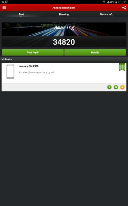 Für den grafischen Teil ist eine Adreno 330 GPU mit 450 MHz Takt zuständig, die wie schon erwähnt bei einer solch großen Auflösung auch bitternötig ist. Wirklich schön zu sehen, dass die Adreno 330 trotzdem ohne Mühen die hohe Auflösung stemmt und selbst grafisch aufwändigere Spiele vom Kaliber eines Galaxy on Fire 2 HD stemmt das Tablet ohne Mühen. Per Bluetooth ein Gamepad gekoppelt und das Galaxy NotePRO 12.2 wird zur hochauflösenden Gaming-Konsole aufgewertet.